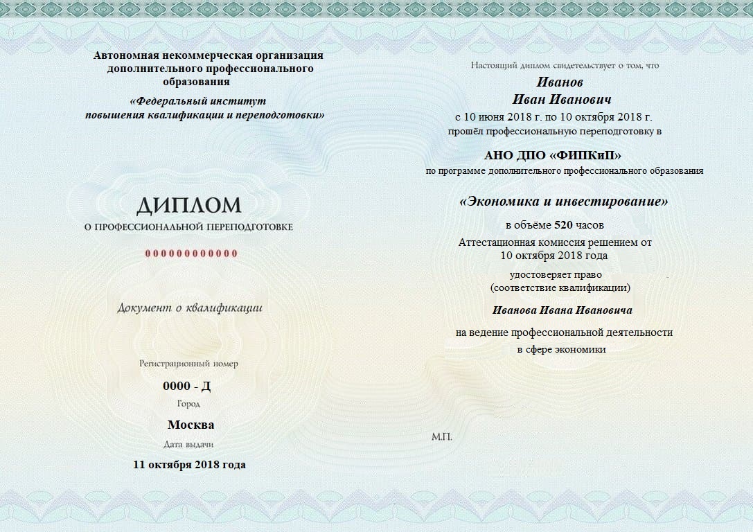Профессиональная переподготовка специалистов в соответствии с квалификационными требованиями к специальности «Экономика и инвестирование»