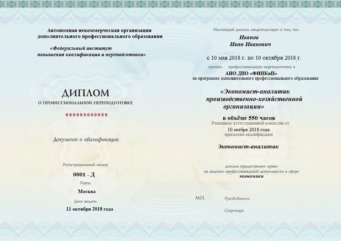 Профессиональная переподготовка специалистов в соответствии с квалификационными требованиями к специальности «Экономист-аналитик производственно-хозяйственной организации»