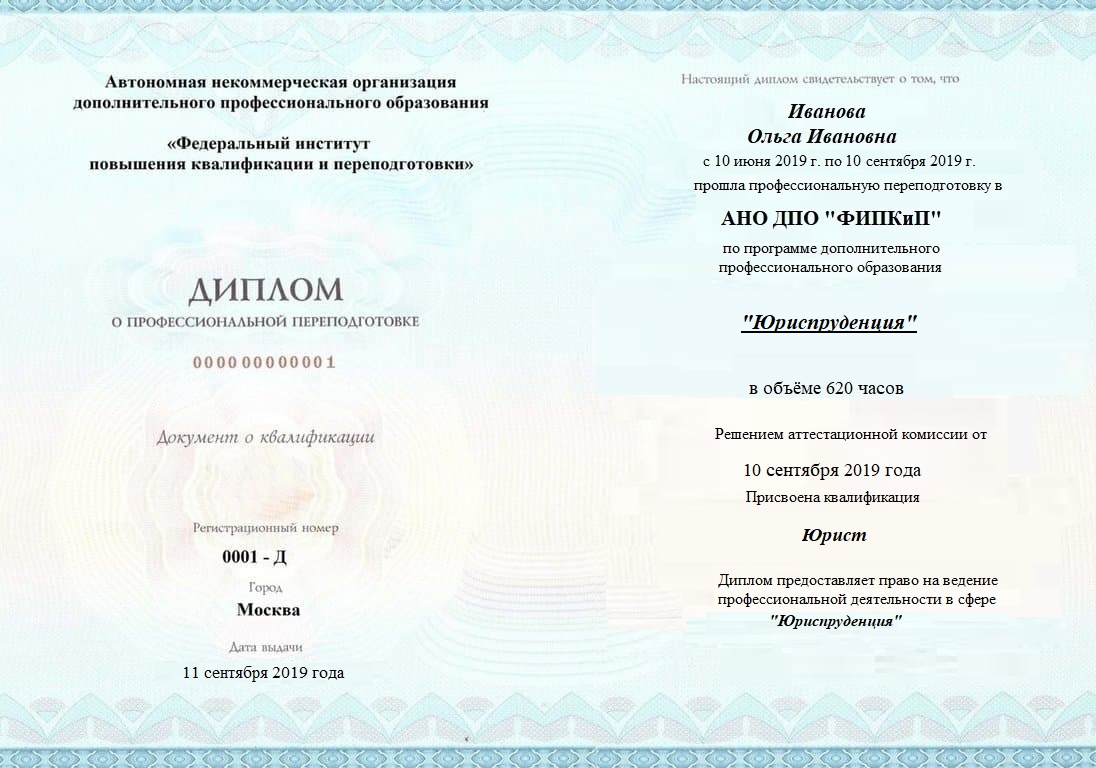 Диплом о профессиональной переподготовке, дающий право на ведение профессиональной деятельности в избранной сфере.