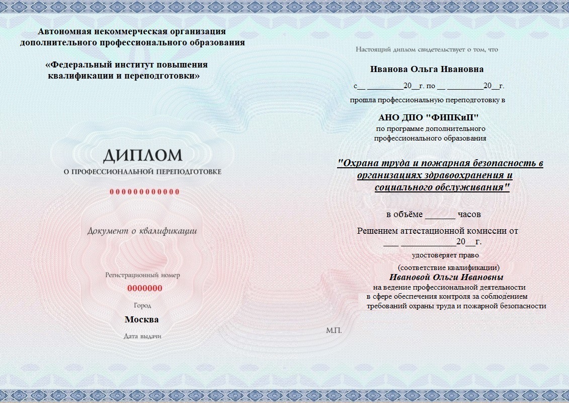 Диплом о профессиональной переподготовке, дающий право на ведение профессиональной деятельности в избранной сфере.