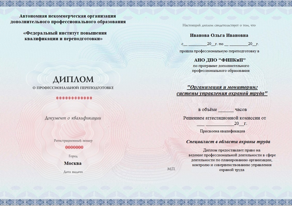 Диплом о профессиональной переподготовке, дающий право на ведение профессиональной деятельности в избранной сфере.