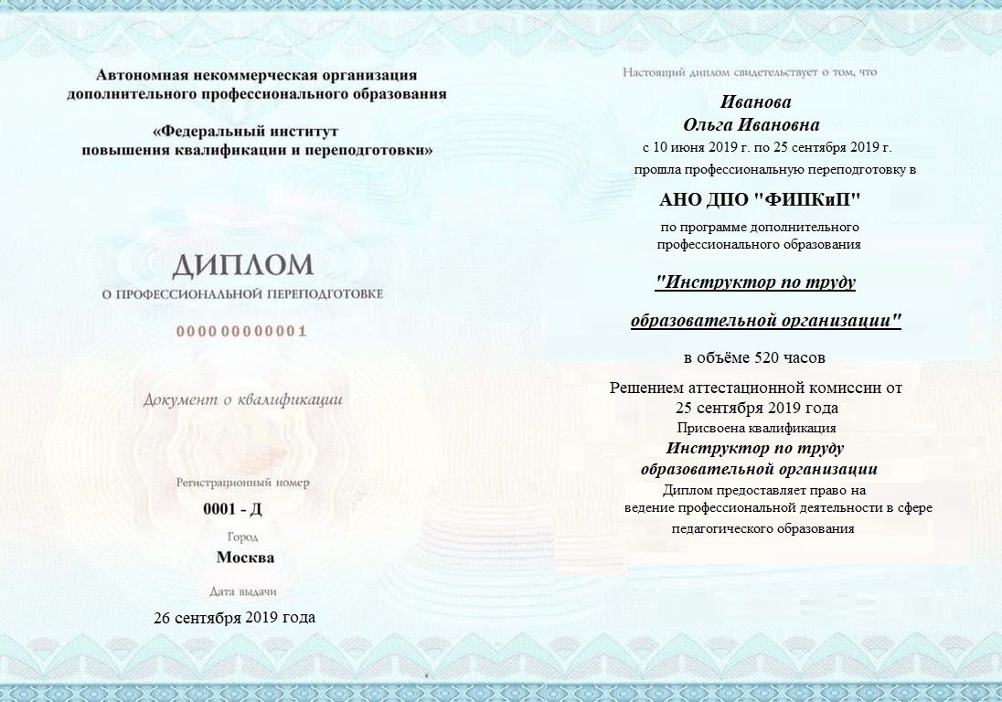 Диплом о профессиональной переподготовке, дающий право на ведение профессиональной деятельности в избранной сфере.