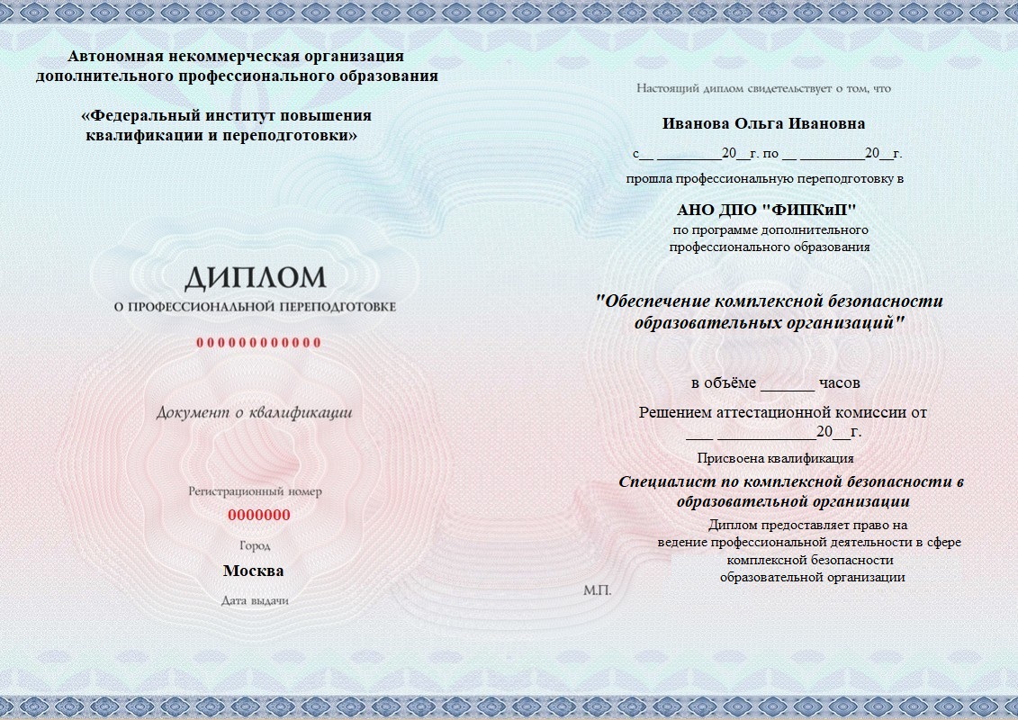 Диплом о профессиональной переподготовке, дающий право на ведение профессиональной деятельности в избранной сфере.