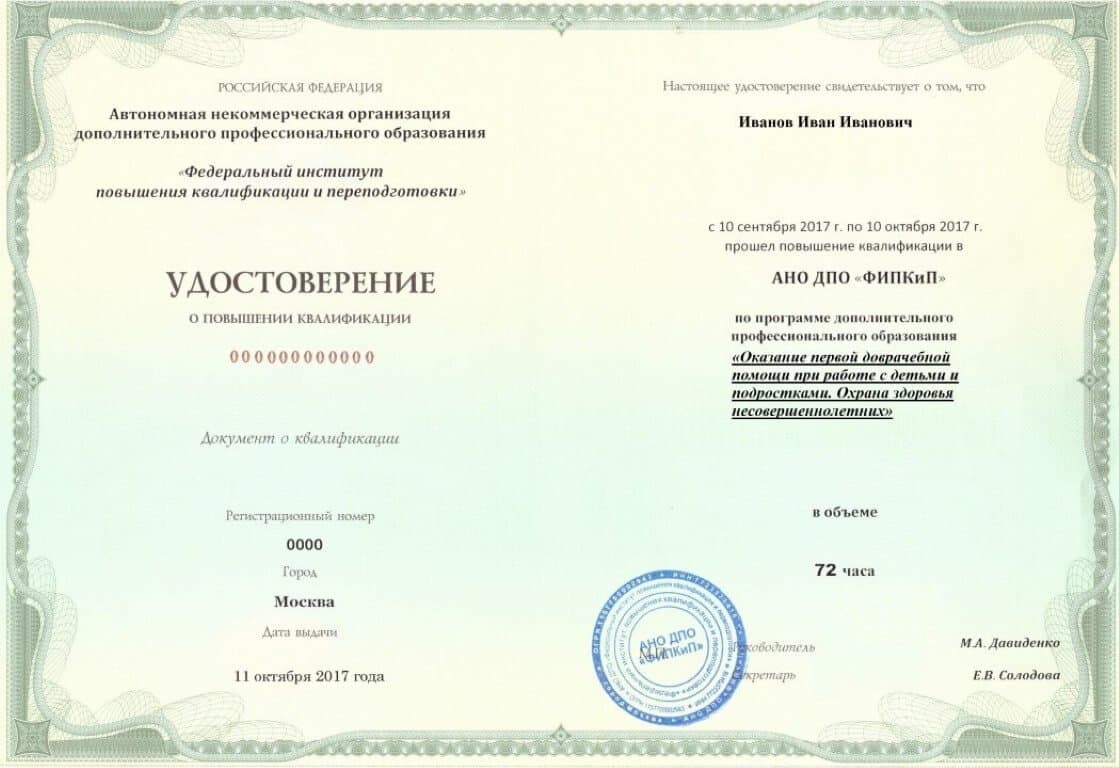 Диплом о профессиональной переподготовке, дающий право на ведение профессиональной деятельности в избранной сфере.