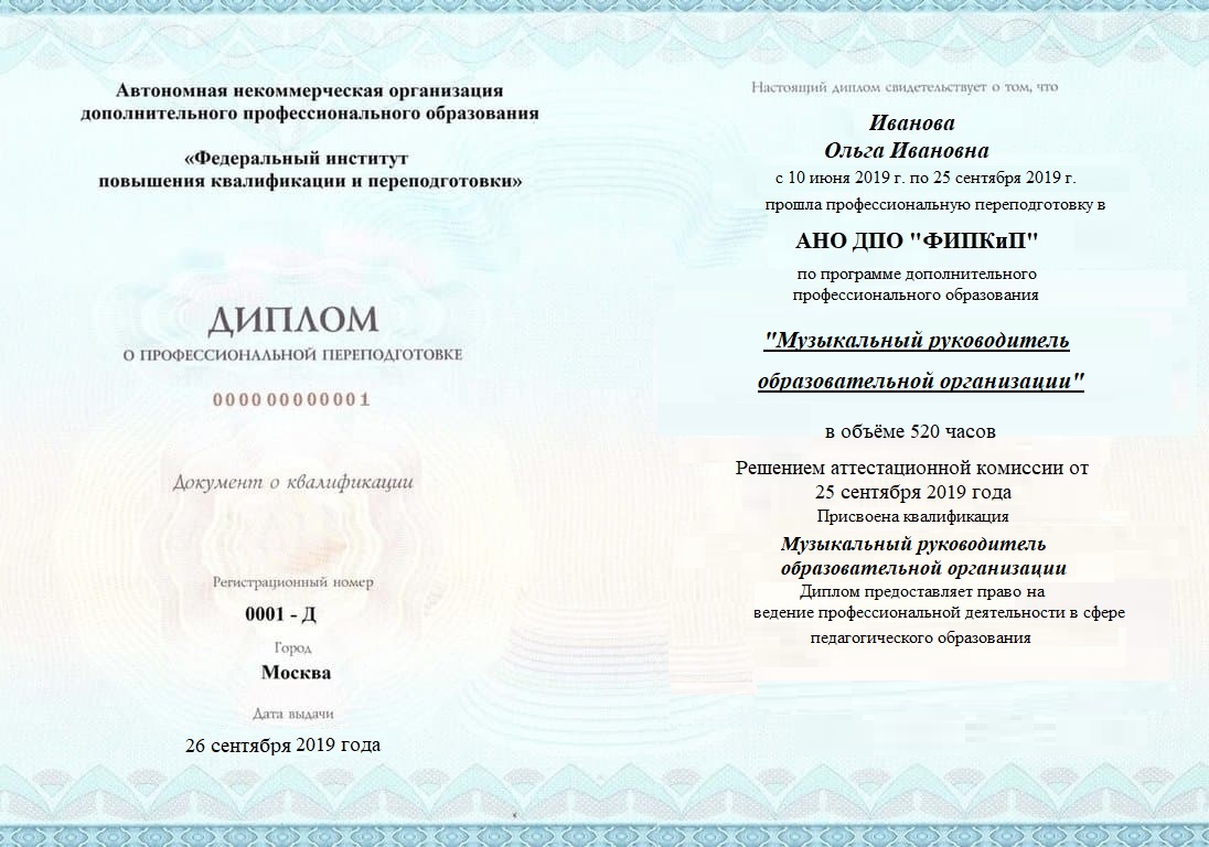 Диплом о профессиональной переподготовке, дающий право на ведение профессиональной деятельности в избранной сфере.