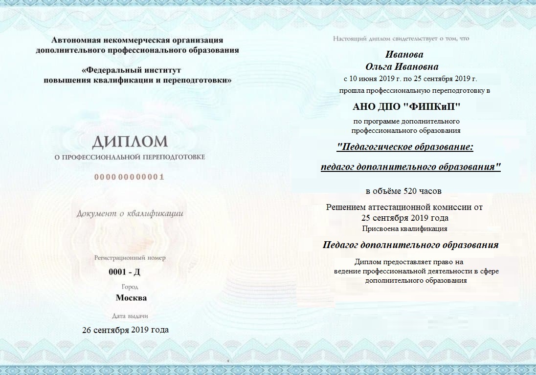 Диплом о профессиональной переподготовке, дающий право на ведение профессиональной деятельности в избранной сфере.
