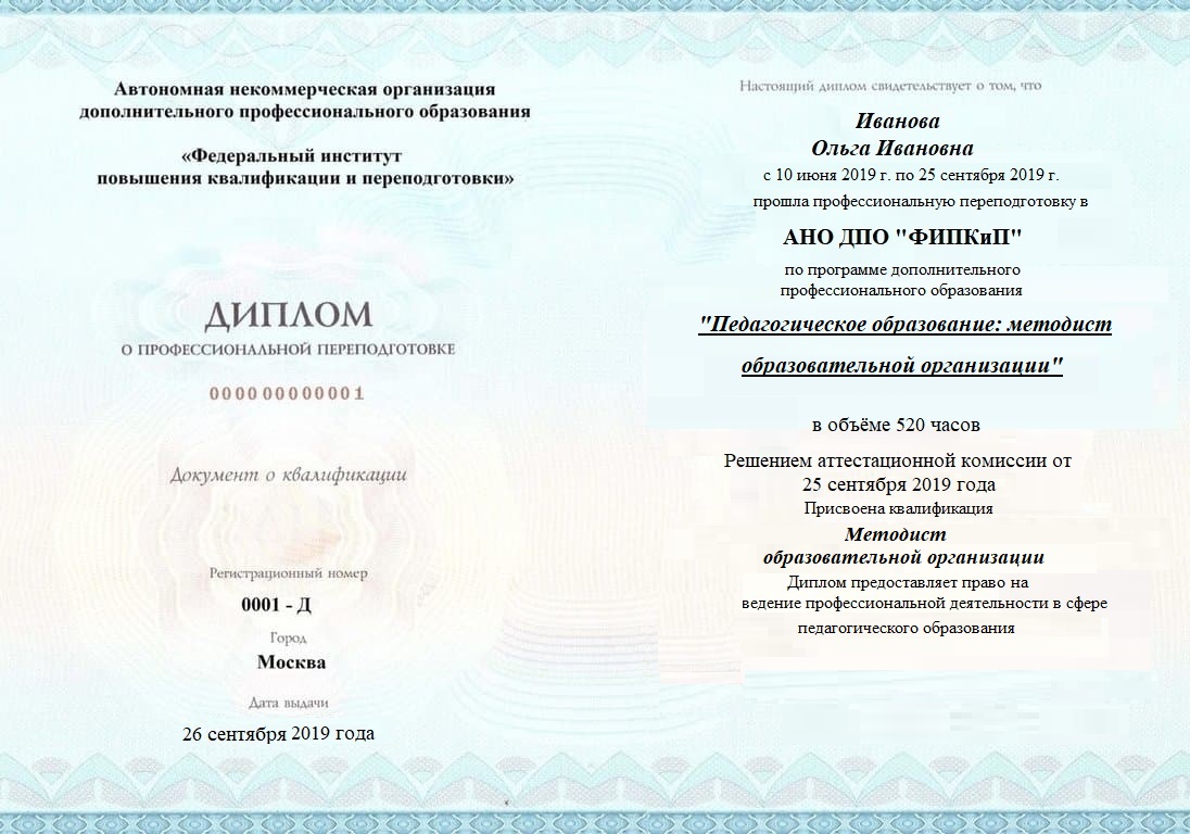Диплом о профессиональной переподготовке, дающий право на ведение профессиональной деятельности в избранной сфере.