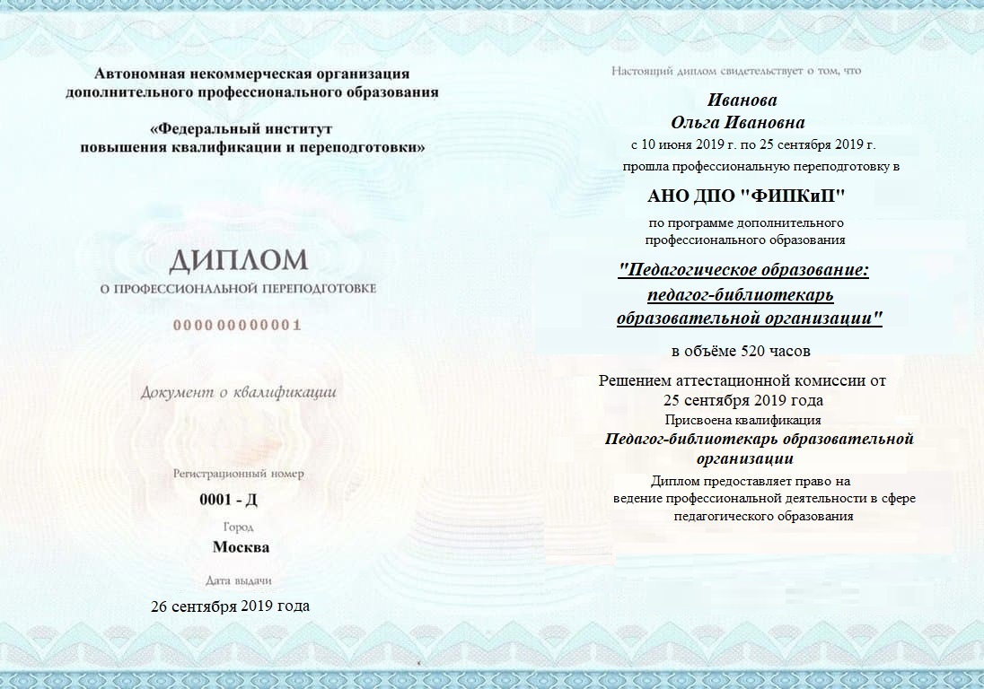 Диплом о профессиональной переподготовке, дающий право на ведение профессиональной деятельности в избранной сфере.