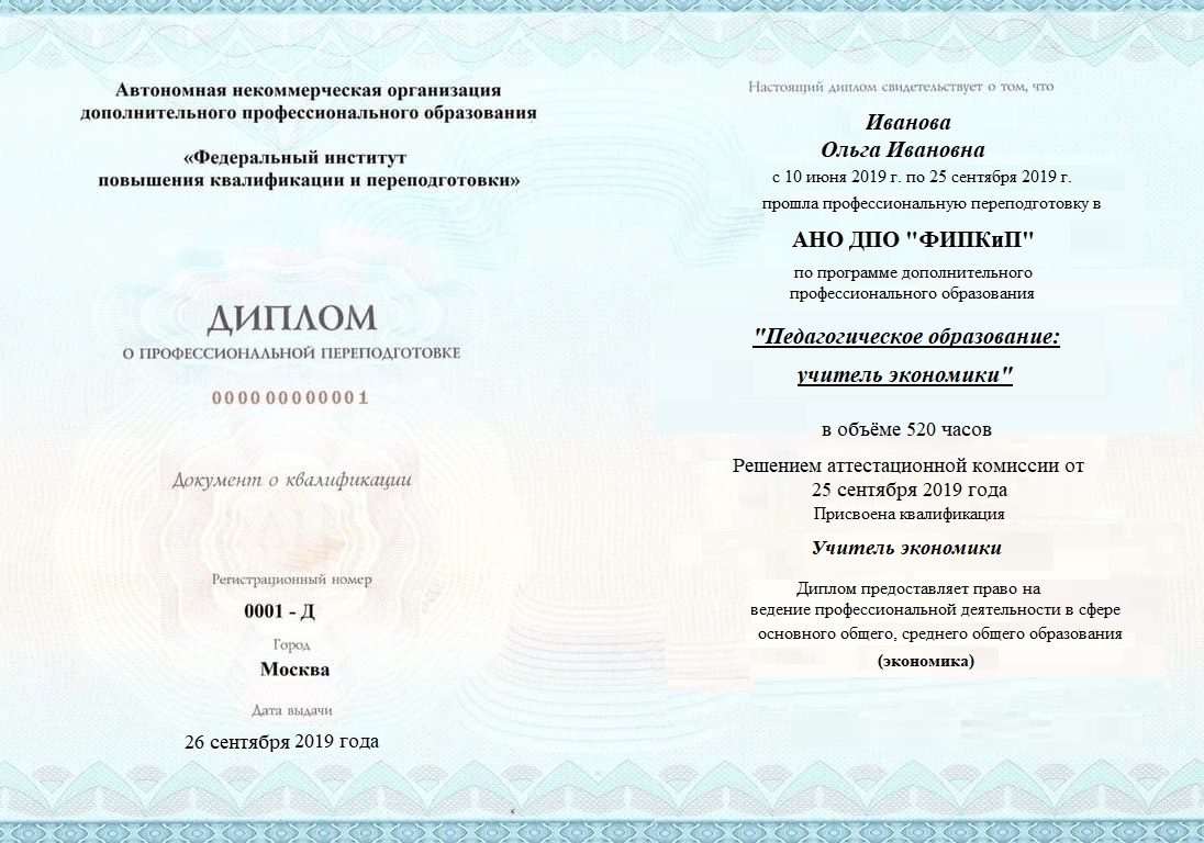 Диплом о профессиональной переподготовке, дающий право на ведение профессиональной деятельности в избранной сфере.