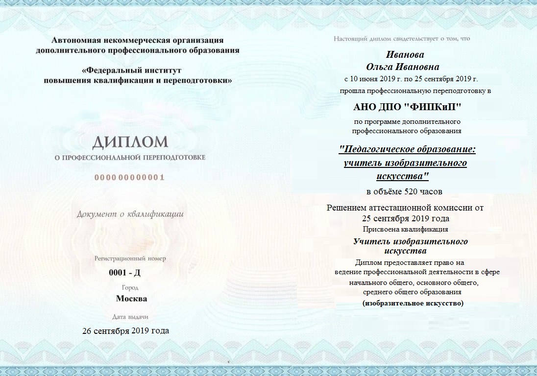 Диплом о профессиональной переподготовке, дающий право на ведение профессиональной деятельности в избранной сфере.