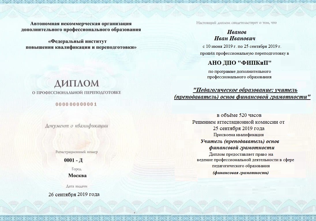 Диплом о профессиональной переподготовке, дающий право на ведение профессиональной деятельности в избранной сфере.