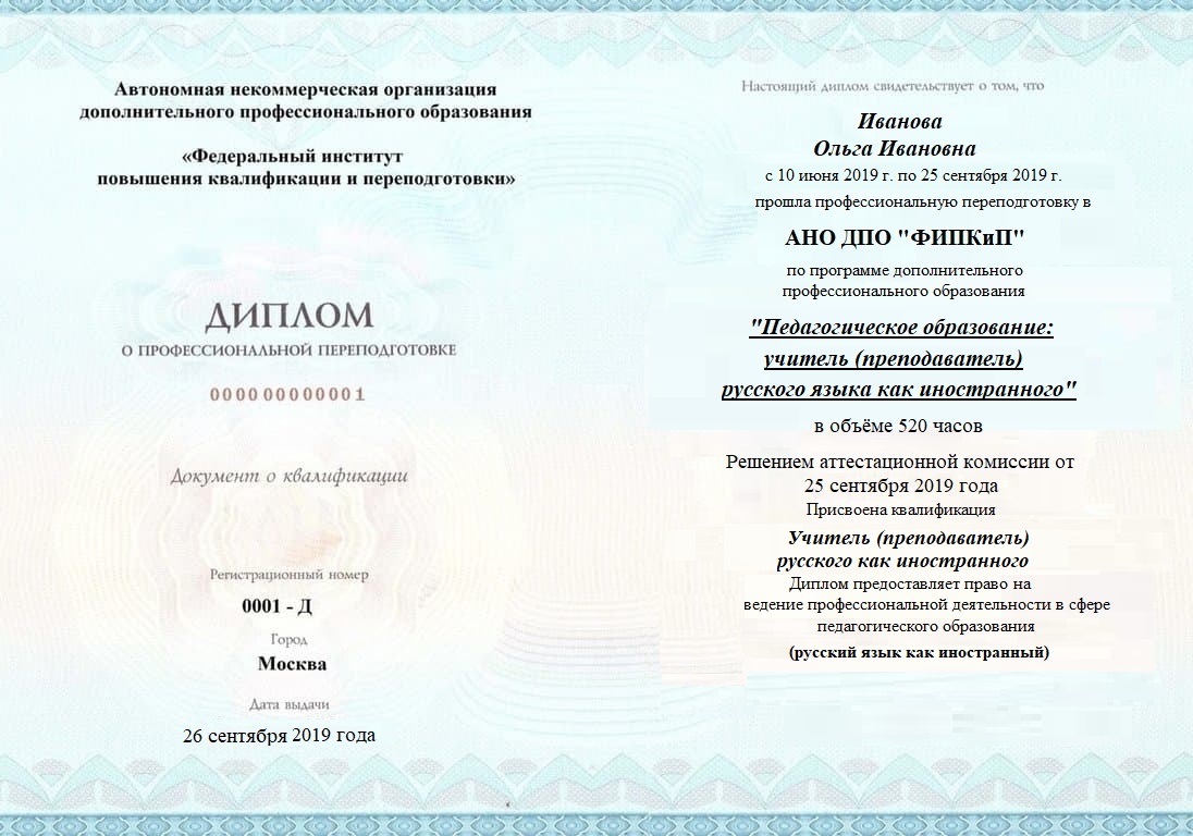 Диплом о профессиональной переподготовке, дающий право на ведение профессиональной деятельности в избранной сфере.