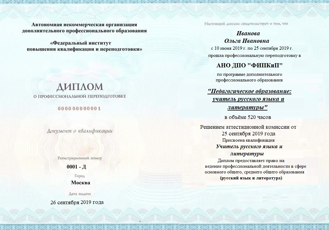 Диплом о профессиональной переподготовке, дающий право на ведение профессиональной деятельности в избранной сфере.