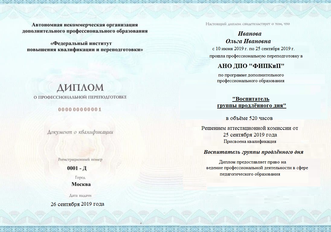 Диплом о повышении квалификации.