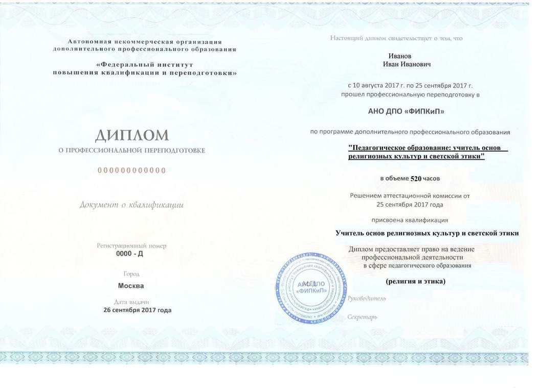 Диплом о профессиональной переподготовке, дающий право на ведение профессиональной деятельности в избранной сфере.