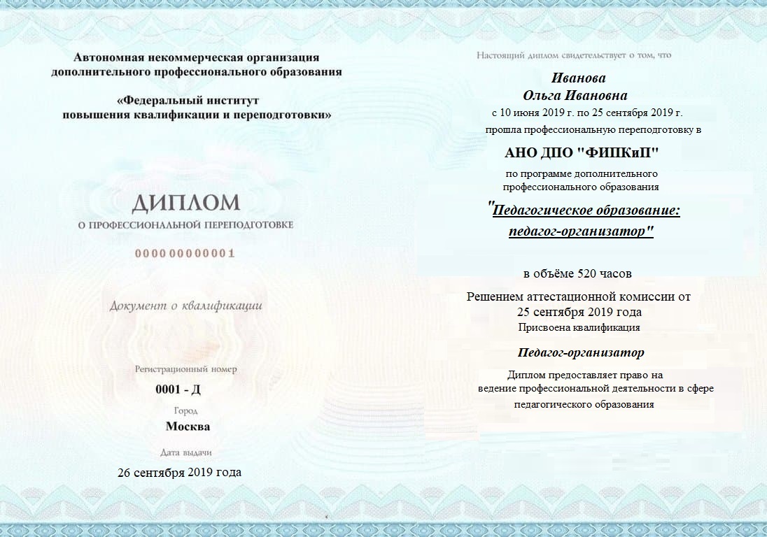 Диплом о профессиональной переподготовке, дающий право на ведение профессиональной деятельности в избранной сфере.