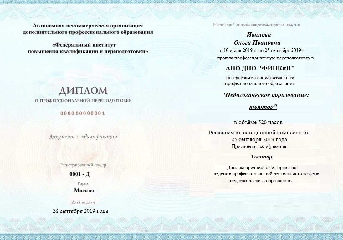 Диплом о профессиональной переподготовке, дающий право на ведение профессиональной деятельности в избранной сфере.