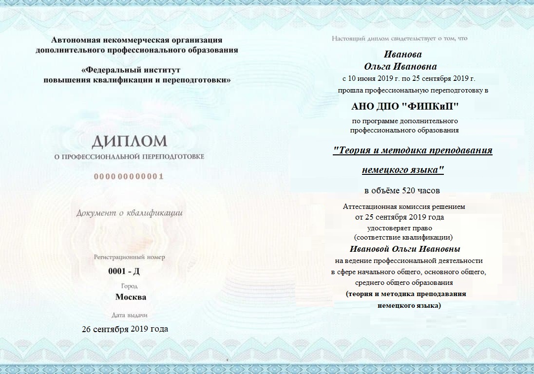 Диплом о профессиональной переподготовке, дающий право на ведение профессиональной деятельности в избранной сфере.