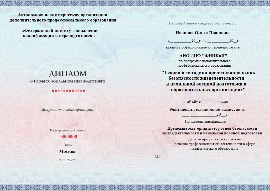 Диплом о профессиональной переподготовке, дающий право на ведение профессиональной деятельности в избранной сфере.