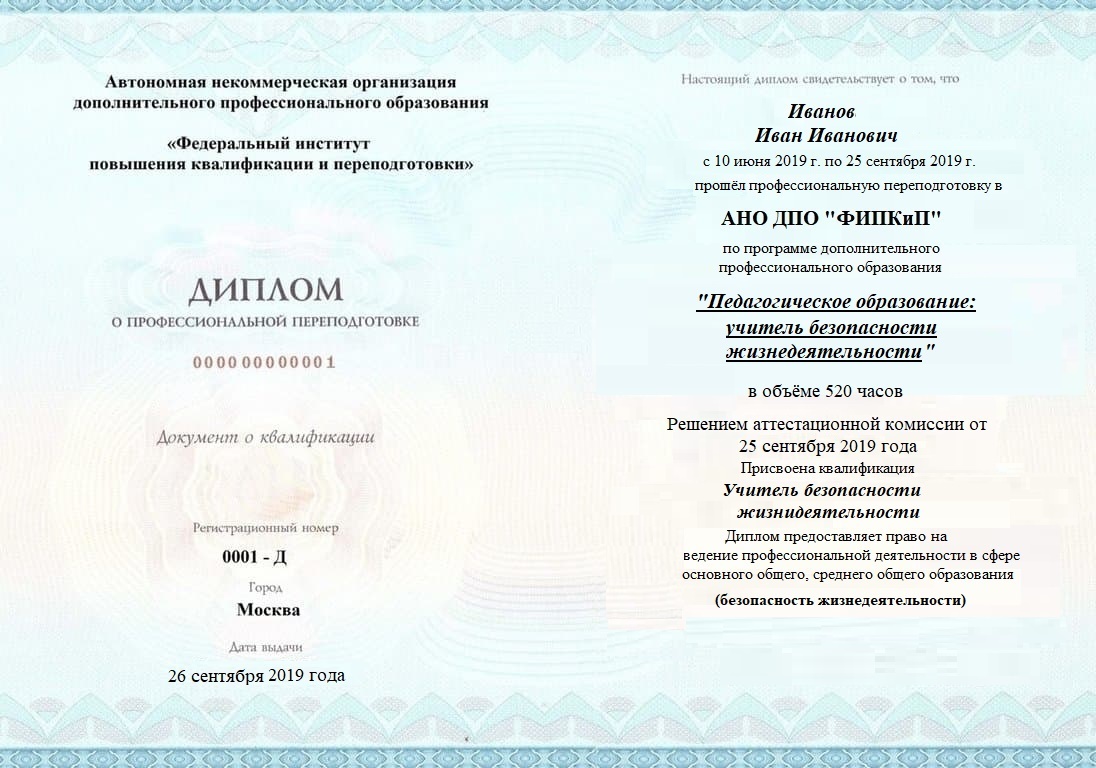 Диплом о профессиональной переподготовке, дающий право на ведение профессиональной деятельности в избранной сфере.