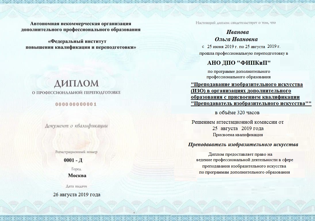 Диплом о профессиональной переподготовке, дающий право на ведение профессиональной деятельности в избранной сфере.
