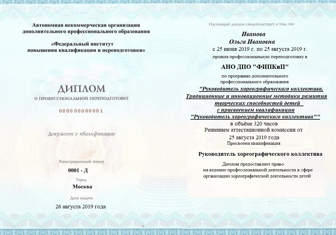 Диплом о профессиональной переподготовке, дающий право на ведение профессиональной деятельности в избранной сфере.