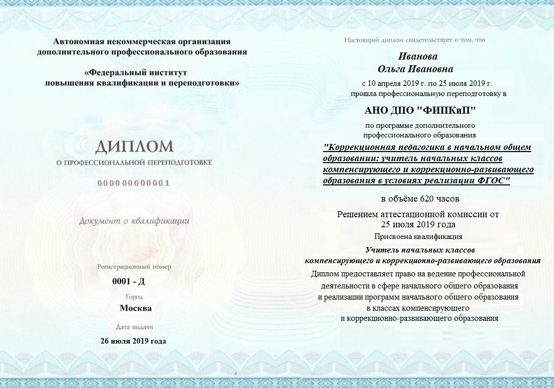 Диплом о профессиональной переподготовке, дающий право на ведение профессиональной деятельности в избранной сфере.