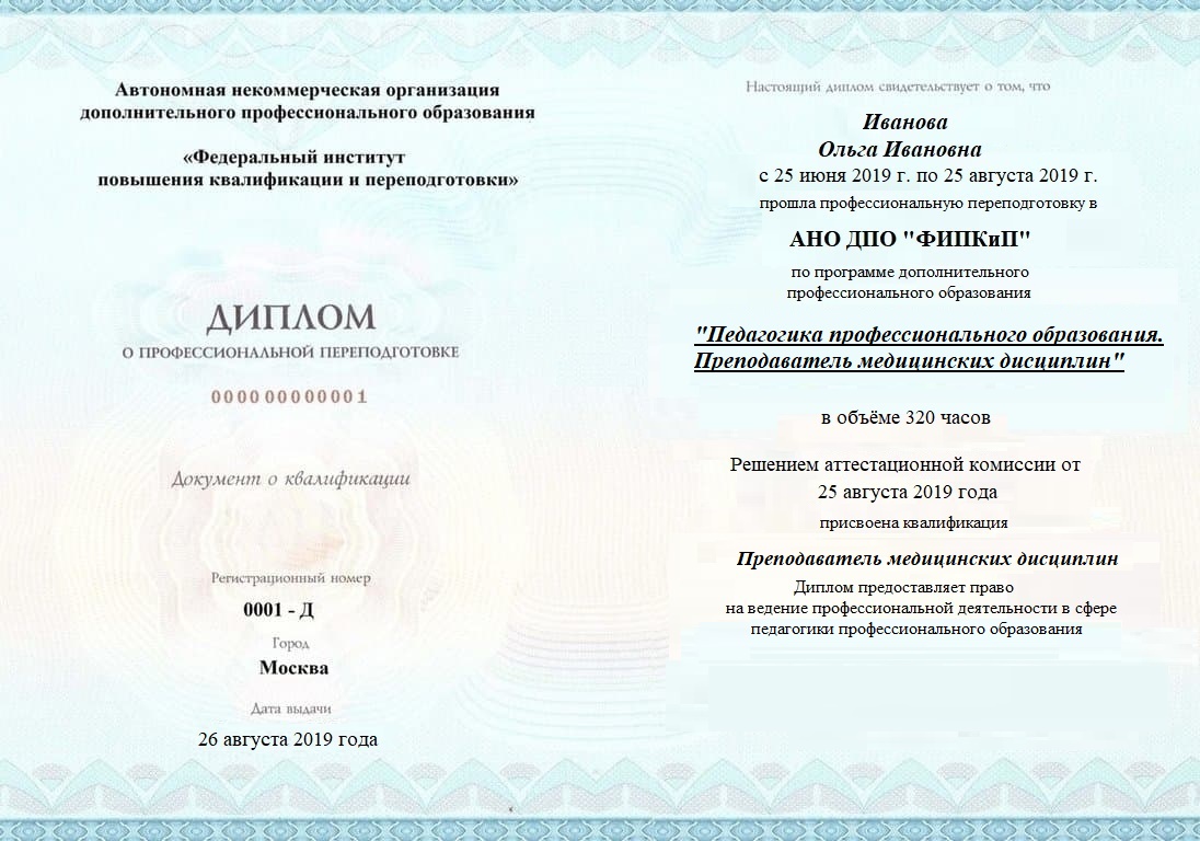 Диплом о профессиональной переподготовке, дающий право на ведение профессиональной деятельности в избранной сфере.