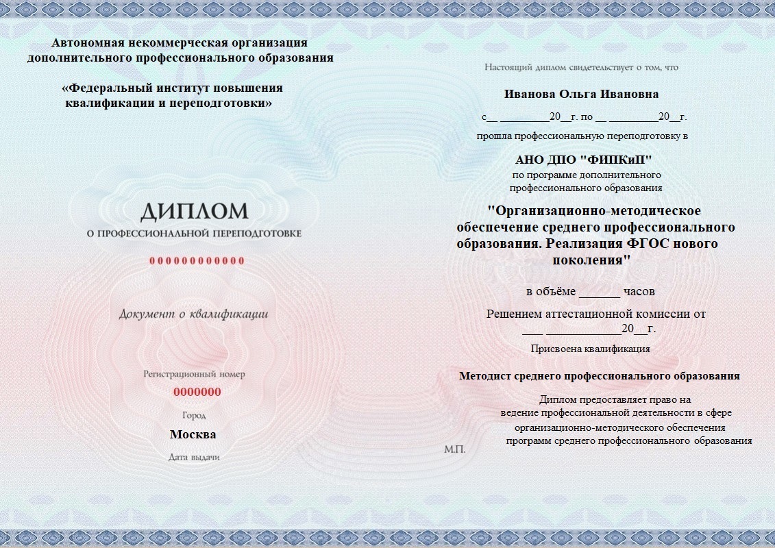 Диплом о профессиональной переподготовке, дающий право на ведение профессиональной деятельности в избранной сфере.