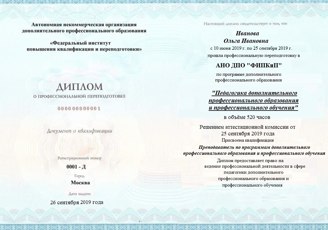 Диплом о профессиональной переподготовке, дающий право на ведение профессиональной деятельности в избранной сфере.