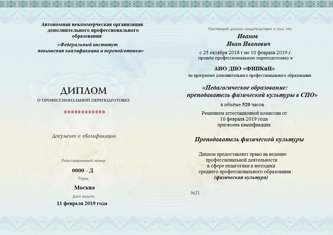 Диплом о профессиональной переподготовке, дающий право на ведение профессиональной деятельности в избранной сфере.