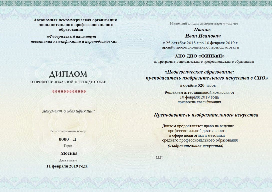 Диплом о профессиональной переподготовке, дающий право на ведение профессиональной деятельности в избранной сфере.
