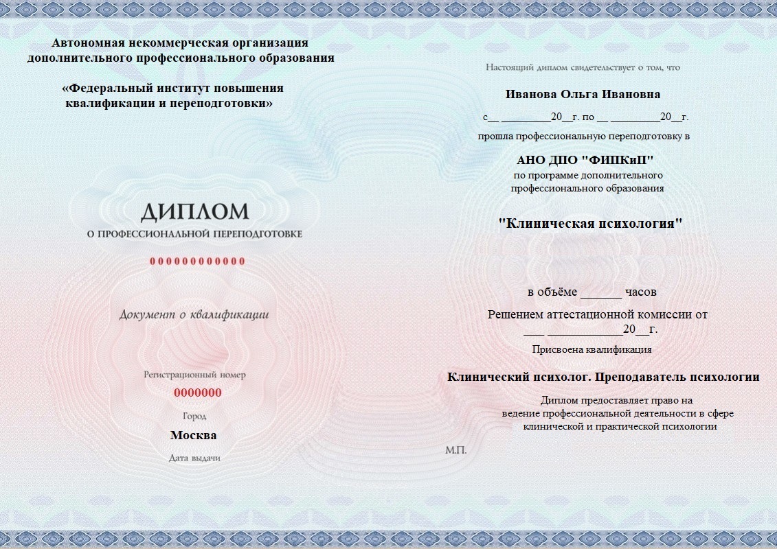 «Клиническая (медицинская) психология» с присвоением квалификации «Клинический психолог. Преподаватель психологии»