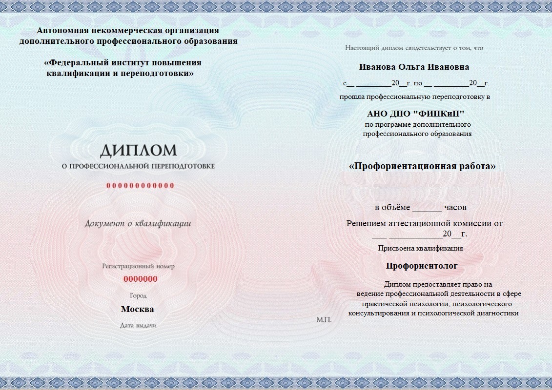 Диплом о профессиональной переподготовке, дающий право на ведение профессиональной деятельности в избранной сфере.