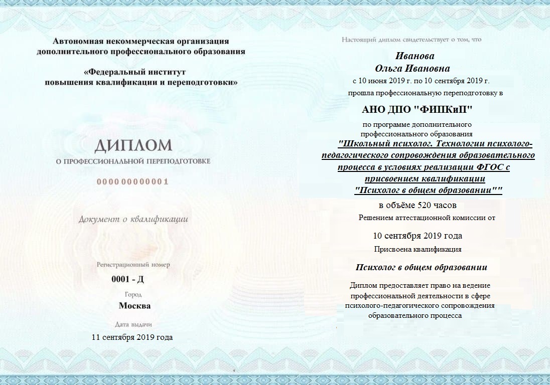 Диплом о профессиональной переподготовке, дающий право на ведение профессиональной деятельности в избранной сфере.