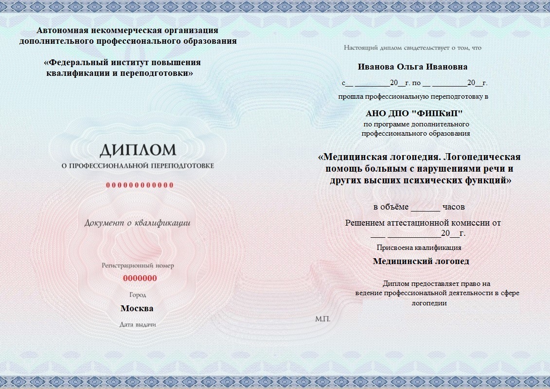 Диплом о профессиональной переподготовке, дающий право на ведение профессиональной деятельности в избранной сфере.