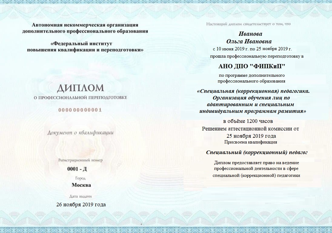 Диплом о профессиональной переподготовке, дающий право на ведение профессиональной деятельности в избранной сфере.