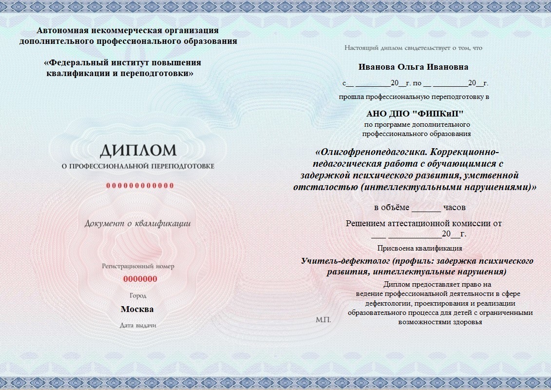 Диплом о профессиональной переподготовке, дающий право на ведение профессиональной деятельности в избранной сфере.