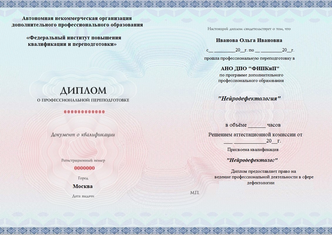 «Нейродефектология» с присвоением квалификации «Нейродефектолог»