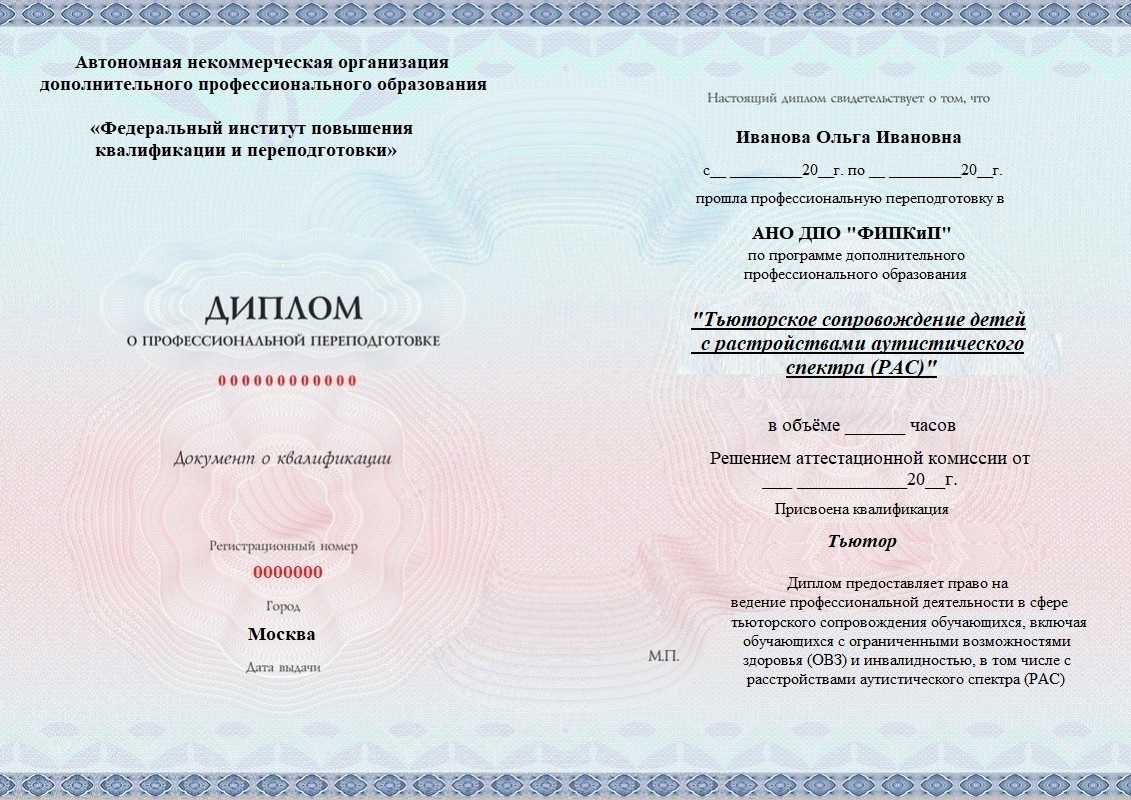 Диплом о профессиональной переподготовке, дающий право на ведение профессиональной деятельности в избранной сфере.
