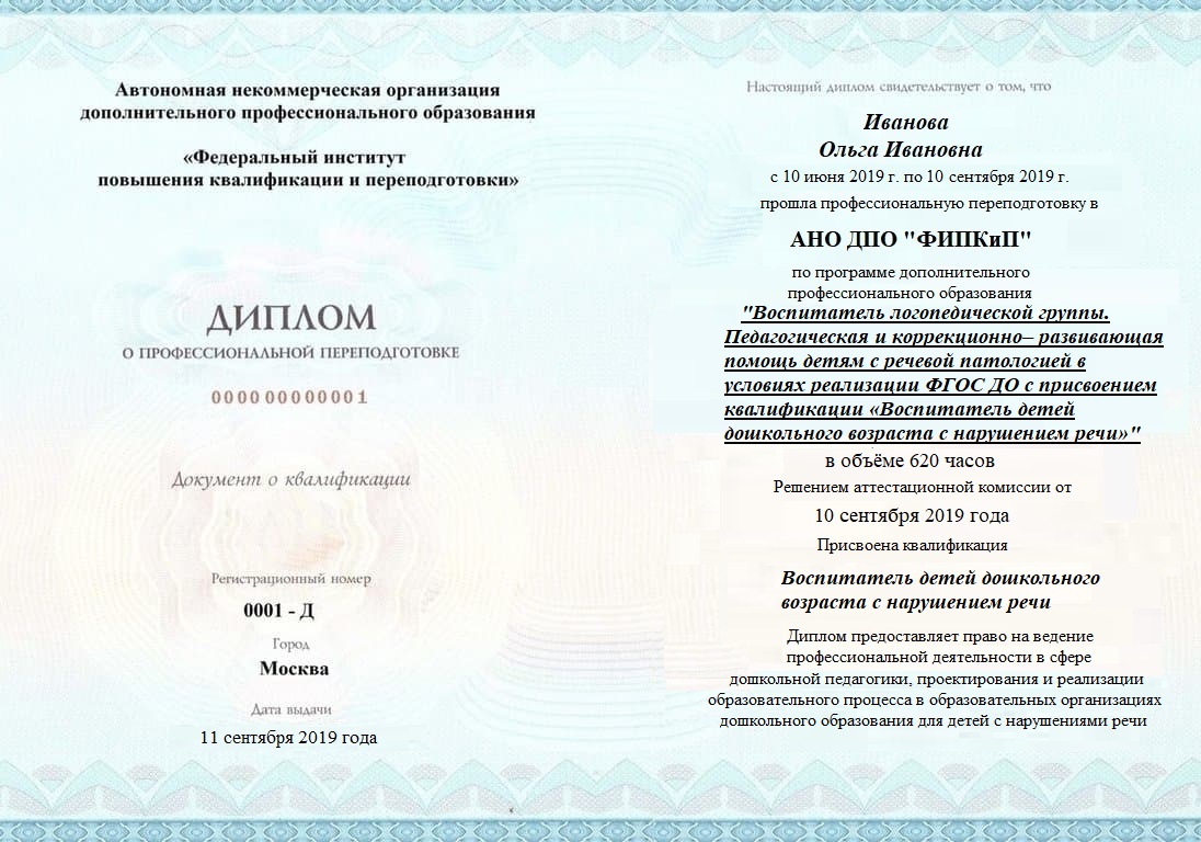 Диплом о профессиональной переподготовке, дающий право на ведение профессиональной деятельности в избранной сфере.