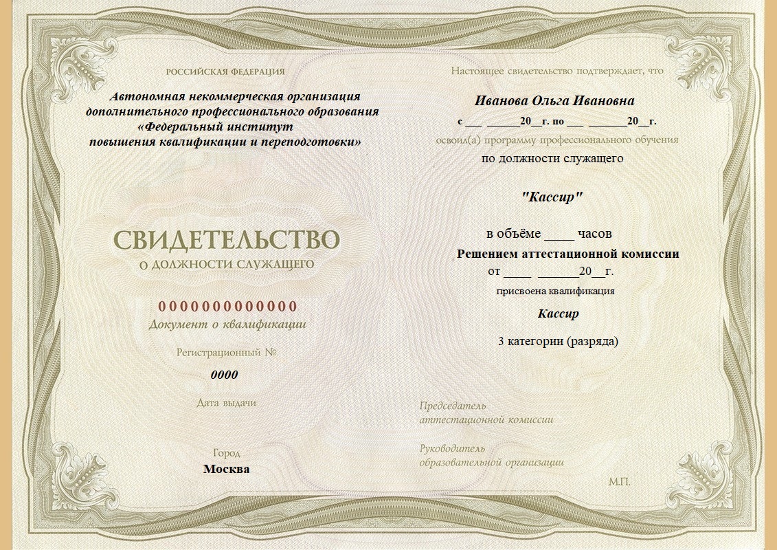 Свидетельство о профессиональной подготовке