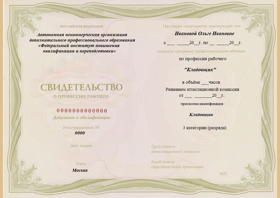Свидетельство о профессиональной подготовке